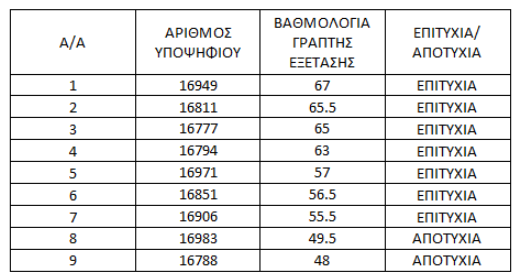 Σημειώνεται ότι, σύμφωνα με τους σχετικούς Νόμους, επιτυχών στη γραπτή εξέταση «σημαίνει πρόσωπο που συμμετέχει στη γραπτή εξέταση και συγκεντρώνει συνολική γενική βαθμολογία 50% τουλάχιστον κατά μέσο όρο».