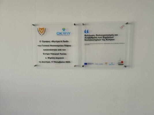 Στο Γενικό Νοσοκομείο Πάφου ολοκληρώθηκε η διαμόρφωση του 4ου ορόφου για τη Μητέρα και το Παιδί, αναβαθμίζοντας γενικότερα και τις υπηρεσίες που προσφέρονται στους ασθενείς. Ο Υπουργός Υγείας εγκαινίασε χθες το νέο Τμήμα στην παρουσία μελών του Διοικητικού Συμβουλίου του ΟΚΥπΥ και της Διεύθυνσης του οργανισμού. Στην ομιλία του ο κ. Δαμιανός σημείωσε ότι η Πολιτεία , ….
